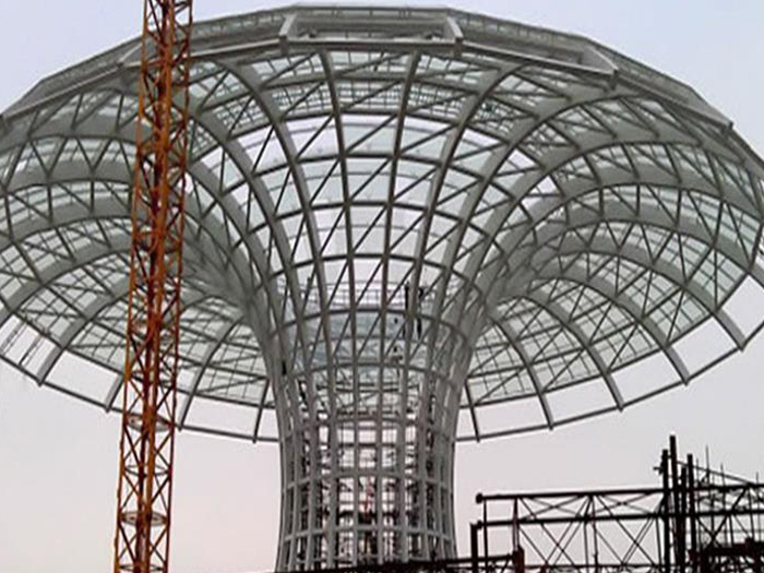 二、球形网架结构因其结构新颖,受力合理,自重轻、用钢量低等优点。如大型体育场馆球形开封螺栓球网架、公共场馆球形网架、电厂开封螺栓球网架、水泥工业球形网架、仓储物流球形网架、开封干煤棚工业球形网架、开封收费站开封加油站球形网架、展览中心、影剧院、商场、航站楼、候车厅、工厂开封车间、仓库、电视塔等球形螺栓球节点网架。国内球形网架结构主要分为:开封焊接球节点网架及螺栓球节点网架两种。螺栓球节点网架其构件工厂内加工量较大,现场安装便捷,适用于现场工期紧,开封施工条件、用电量受制约,网架形状复杂、开封杆件定位困难的异形结构。螺栓球节点球形网架系统基本由开封杆件、螺栓球、支撑支座等组成。按照节点形式可分为交叉开封桁架体系、四角锥体系、三角锥体系等。支撑方式多为固定支座支撑。对于大面积、大跨度及有特殊受力或伸缩要求的网架结构可采用橡胶支座、滑移支座、球铰支座等支撑形式,以满足结构自身的受力稳定、均衡,便于内力释放等设计要求。